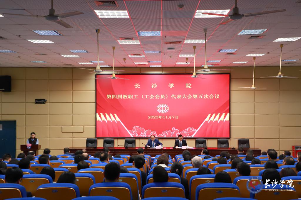 11月7日下午,长沙学院第四届教职工(工会会员)代表大会第五次会议在致远楼学术报告厅胜利召开。党委书记杨小云及全体校领导出席会议。会议由党委副书记刘寒波主持。大会审议通过了《长沙学院专业技术职称评审实施办法(修订草案)》。