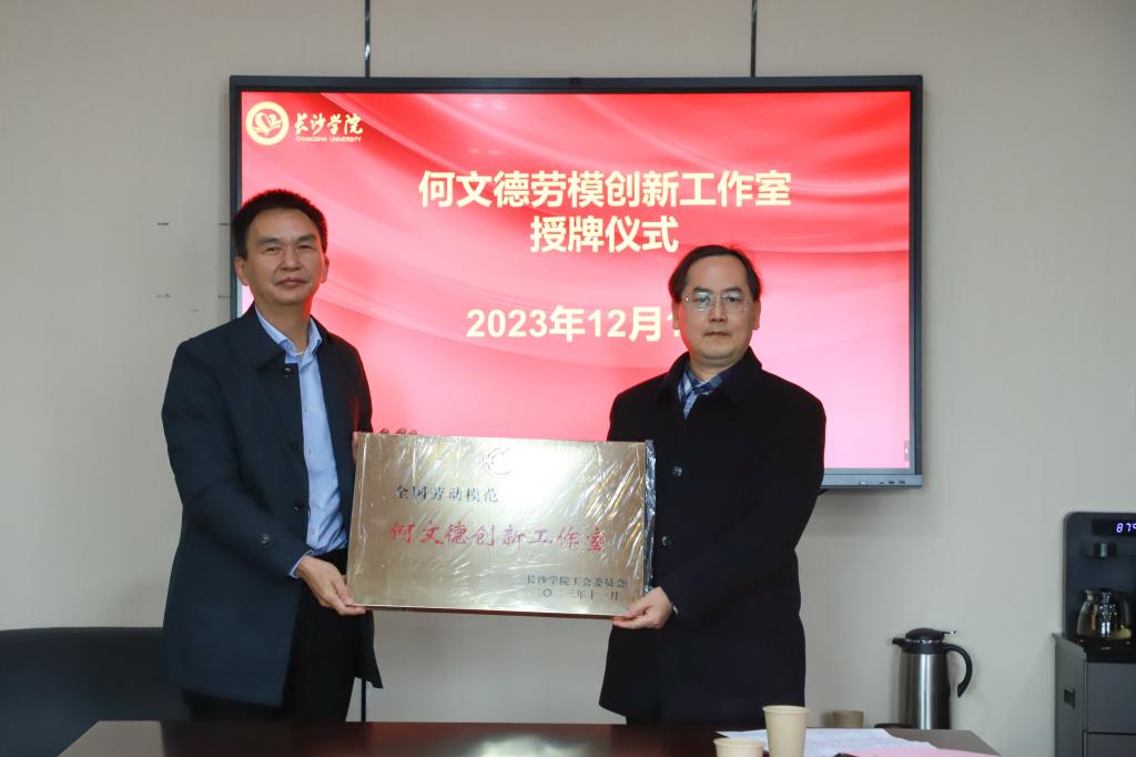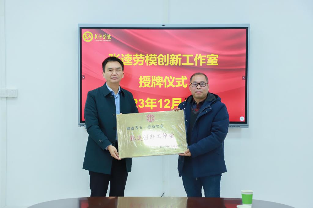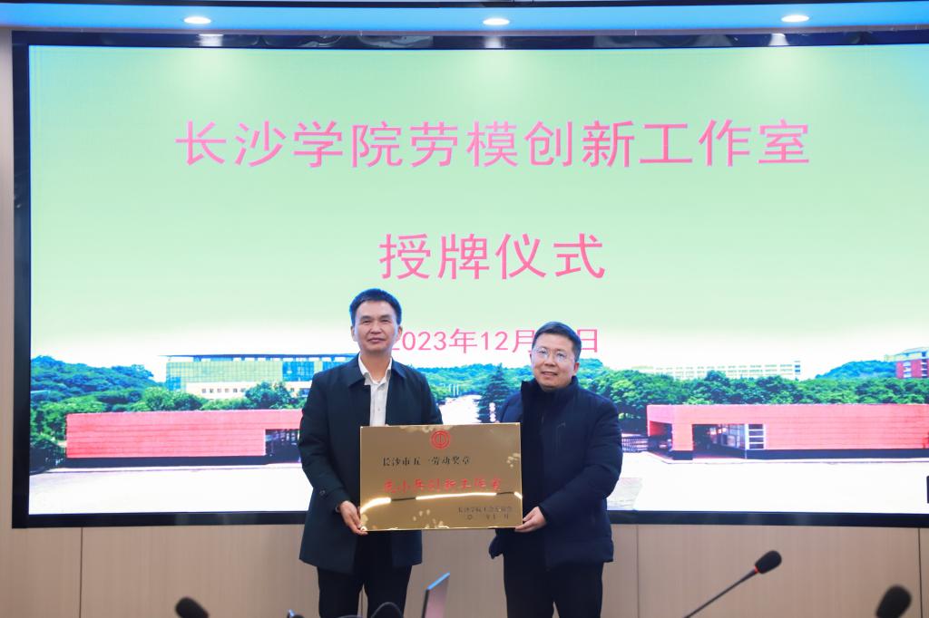 (图为刘寒波向长沙市劳动模范邓晖劳模创新工作室授牌)